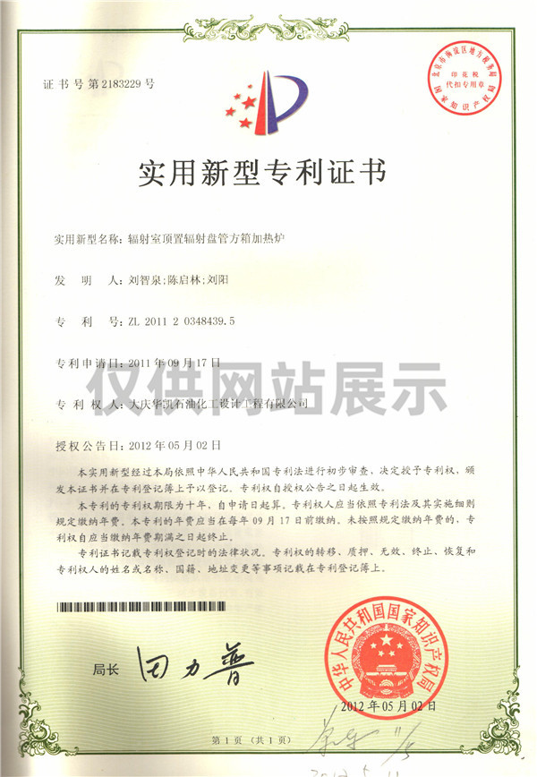 輻射室頂置輻射盤(pán)管方箱加熱爐